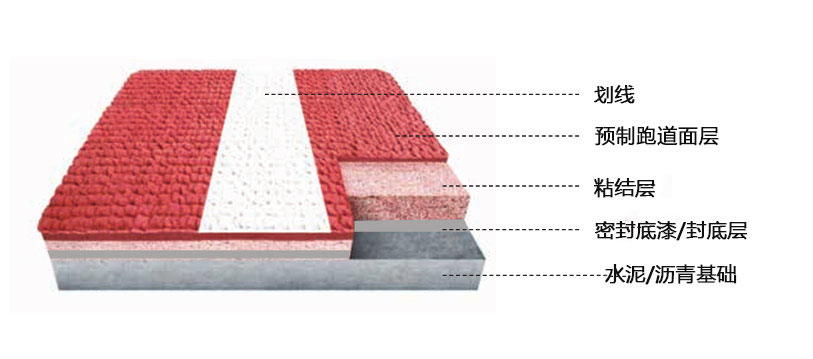 卷材铺设:在底胶未固化前铺设跑道卷材,铺设完成后进行压砖;