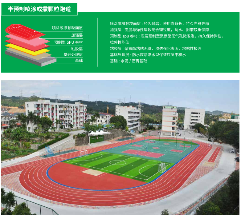 #13mm新国标半预制跑道(8mmSPU卷材)
