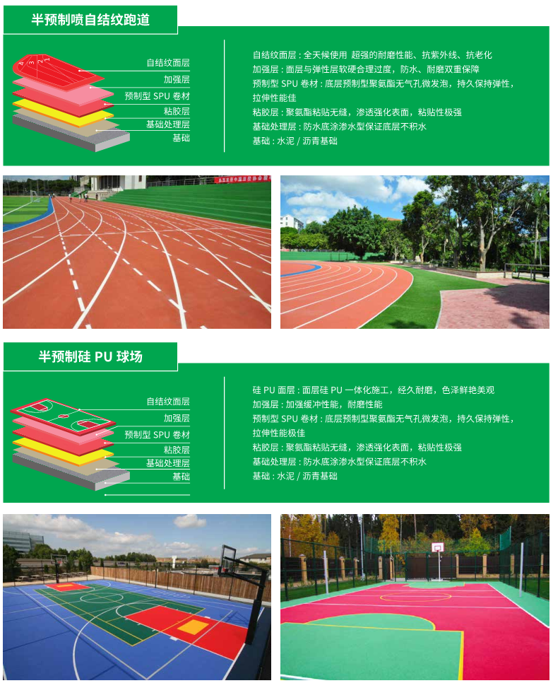 #面层标准厚度均匀,经久耐磨,可做自结纹跑道和颗粒型跑道或硅 PU面漆